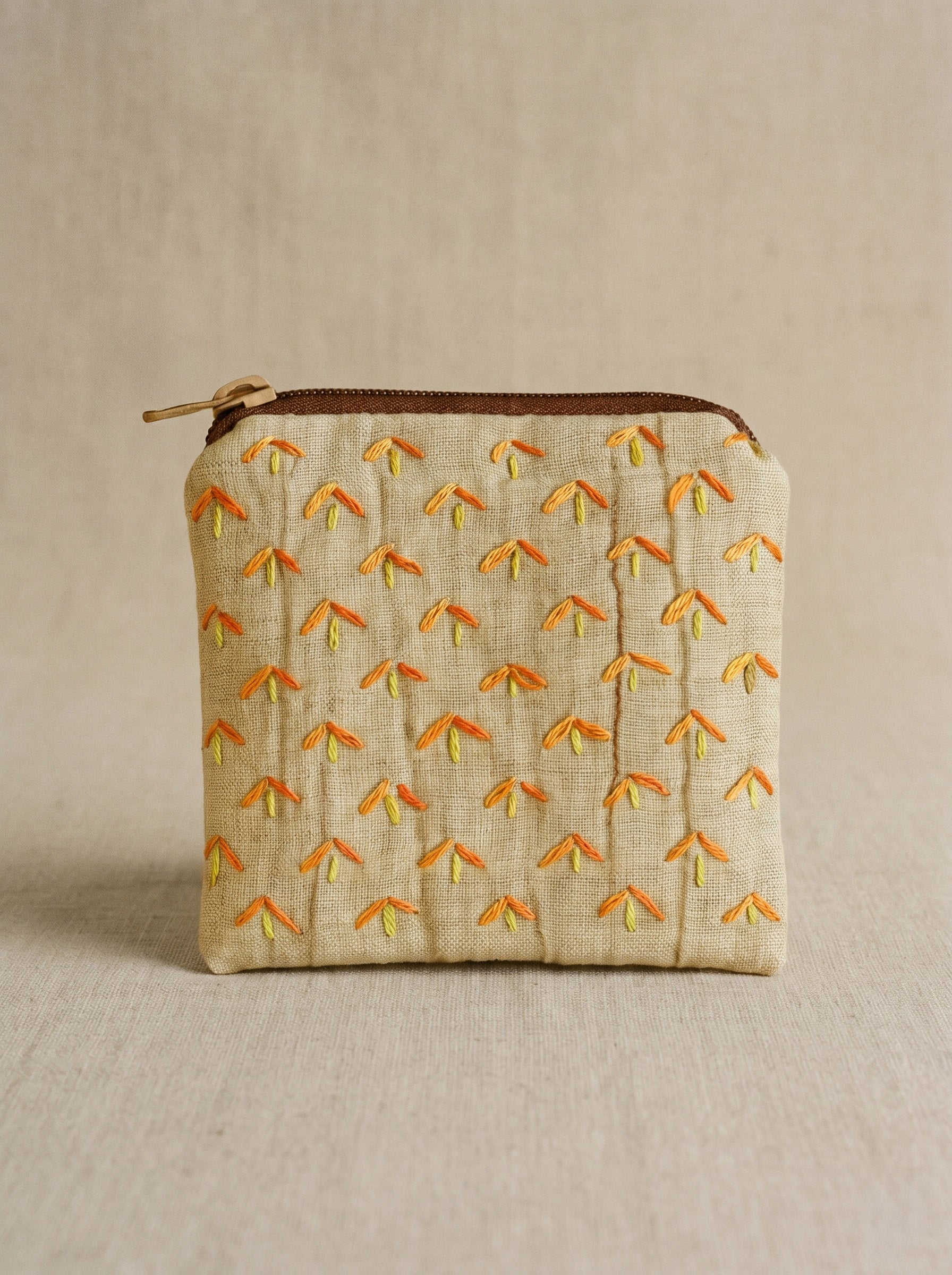 A minimalist countryside pouch with subtle hand-embroidered details. Crafted from soft natural linen-cotton fabric, it brings warm rustic elegance and gentle handmade charm to your everyday carry.