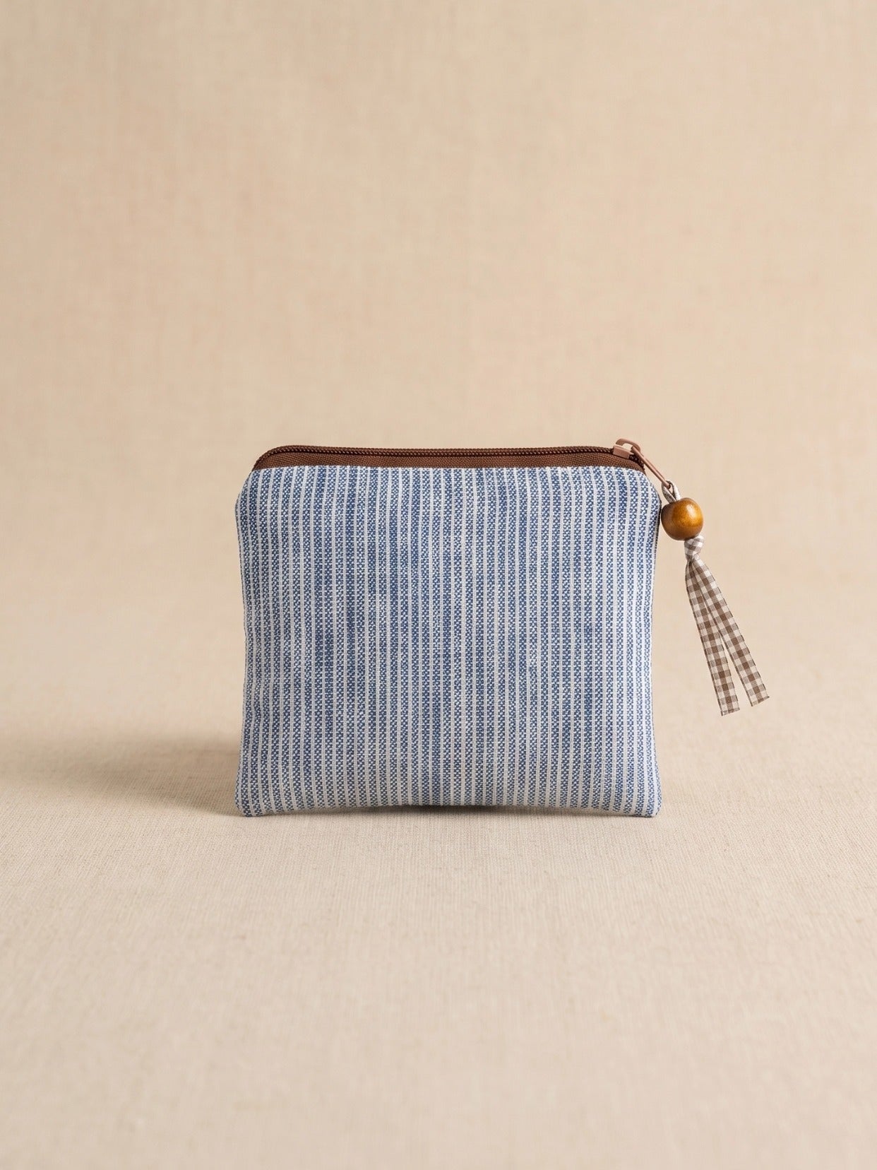 A compact linen-cotton pouch with timeless character, crafted from yarn-dyed blue and white striped fabric. Thoughtfully designed for everyday essentials, it combines practicality with a subtle handmade aesthetic.