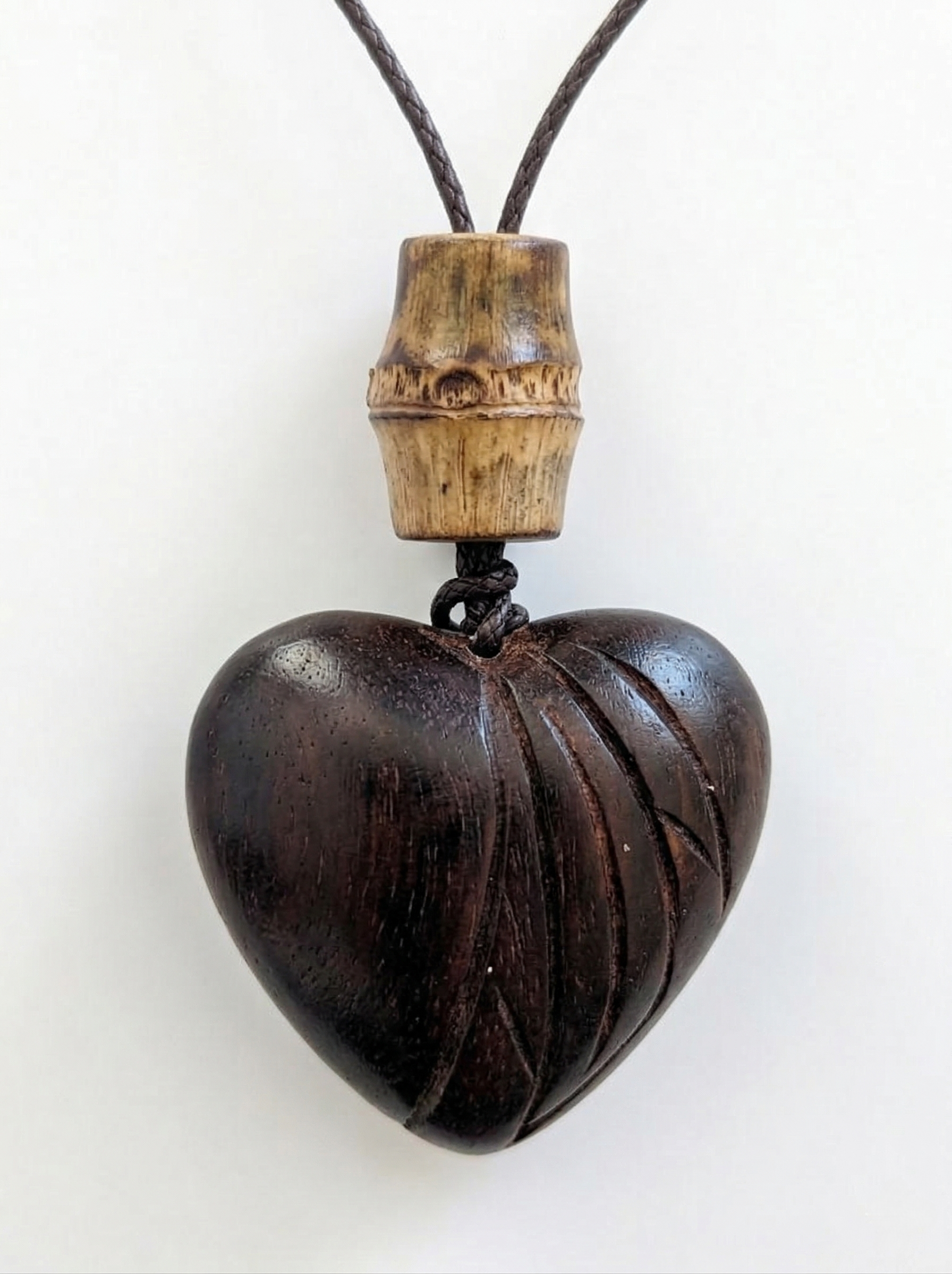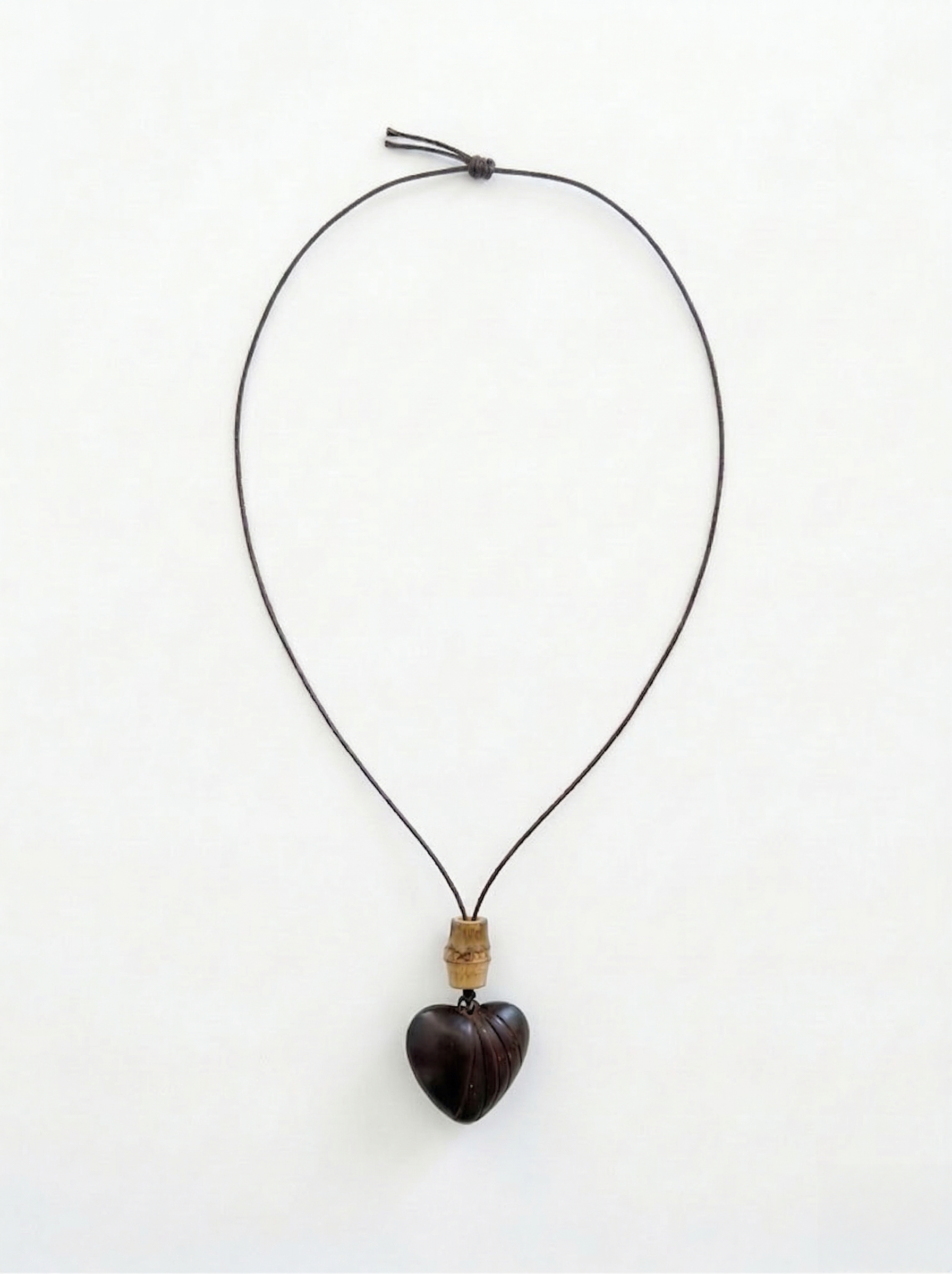 Wooden heart pendant crafted from natural wood with rich grain and vintage-inspired accents and finished with a wax cord for a relaxed, effortless feel.