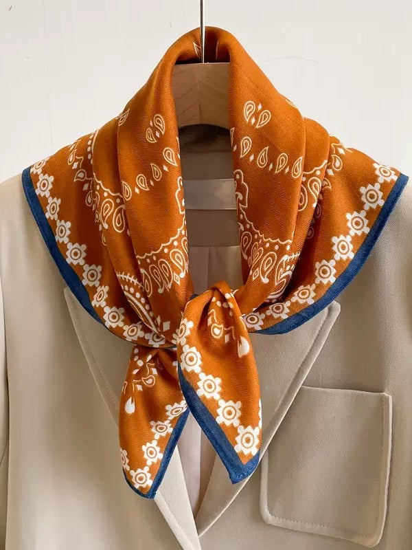 A vintage-inspired bandana scarf with a bold paisley print, designed to add a retro, laid-back edge to everyday outfits.