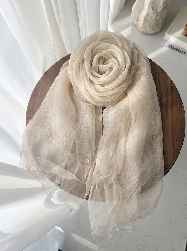 • Details: Natural frayed edges add a relaxed, lived-in charm. The crinkled texture gives it a unique, ethereal quality.