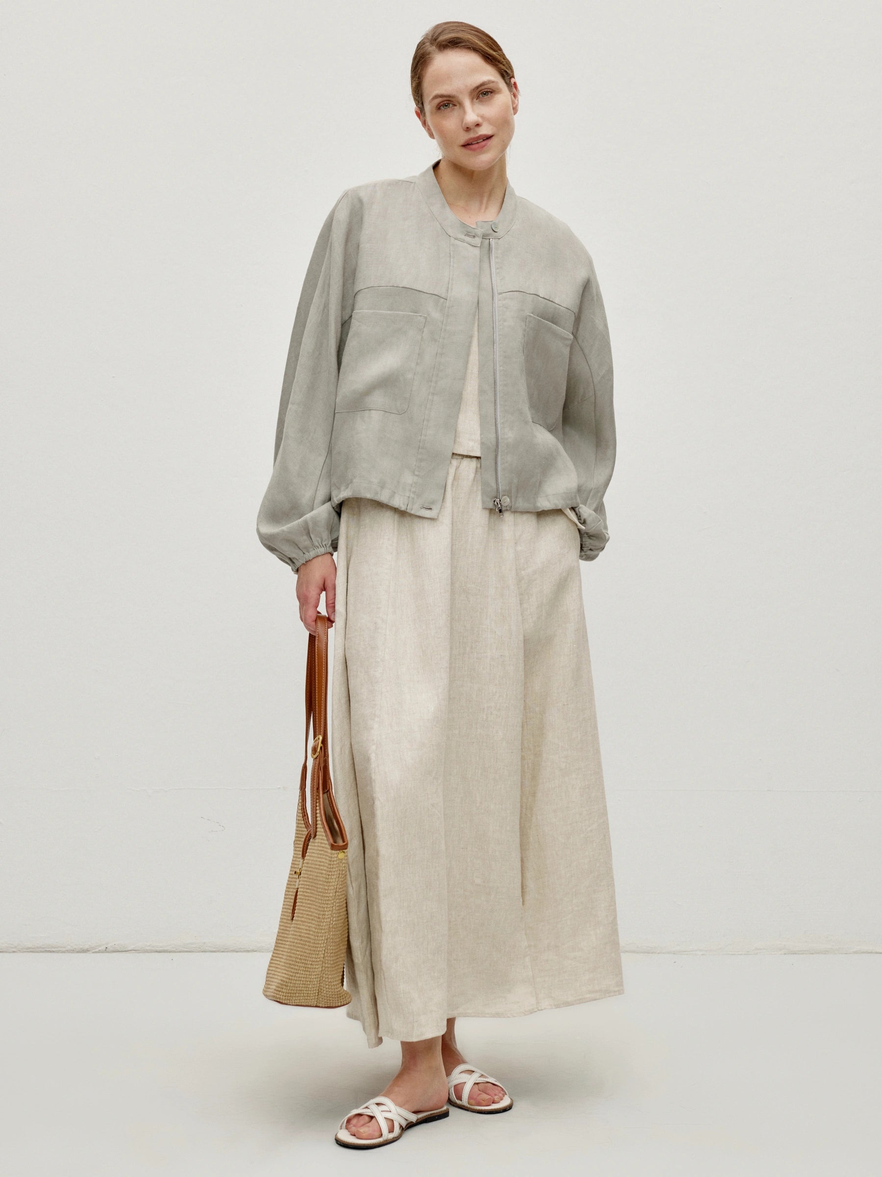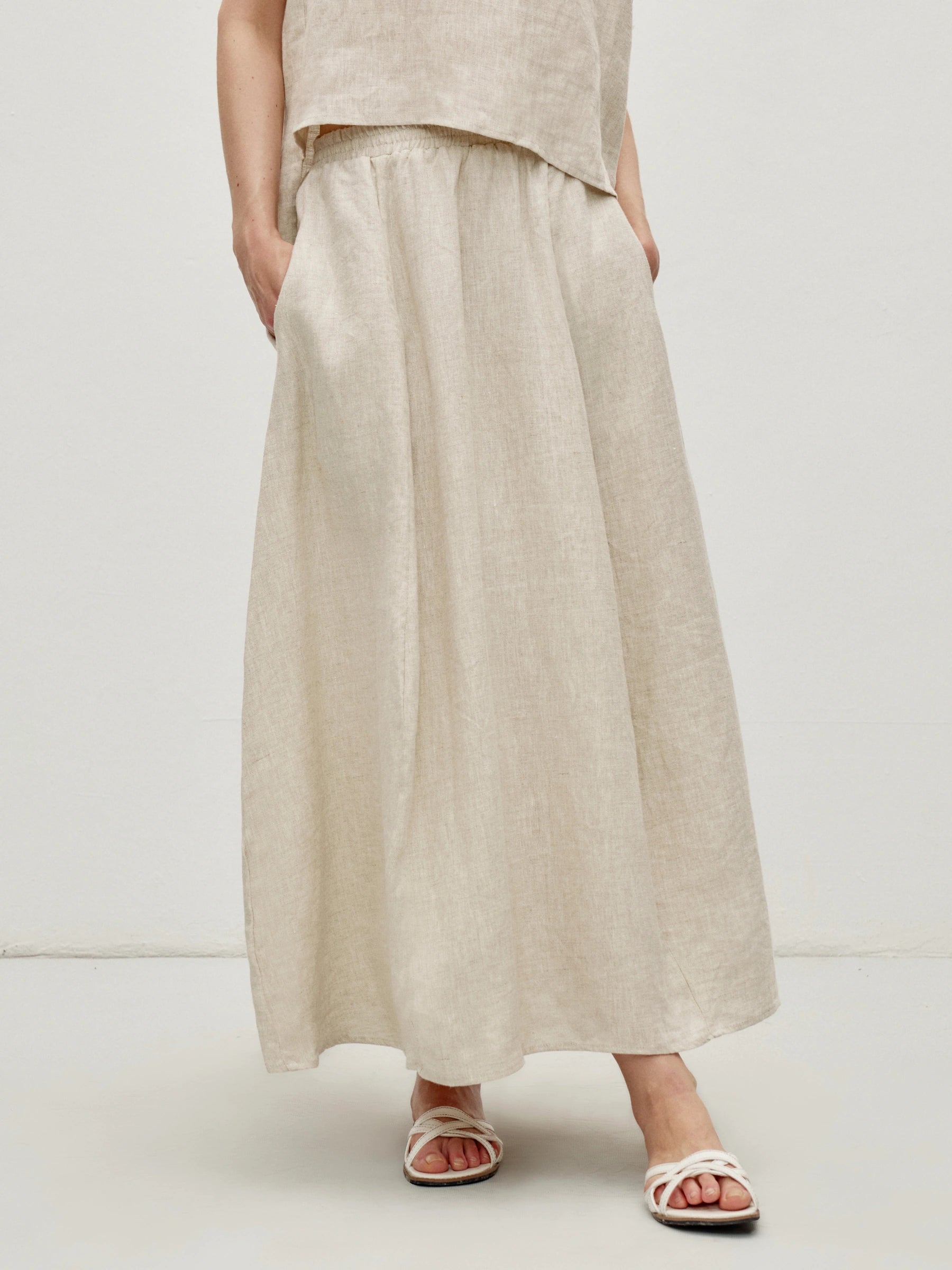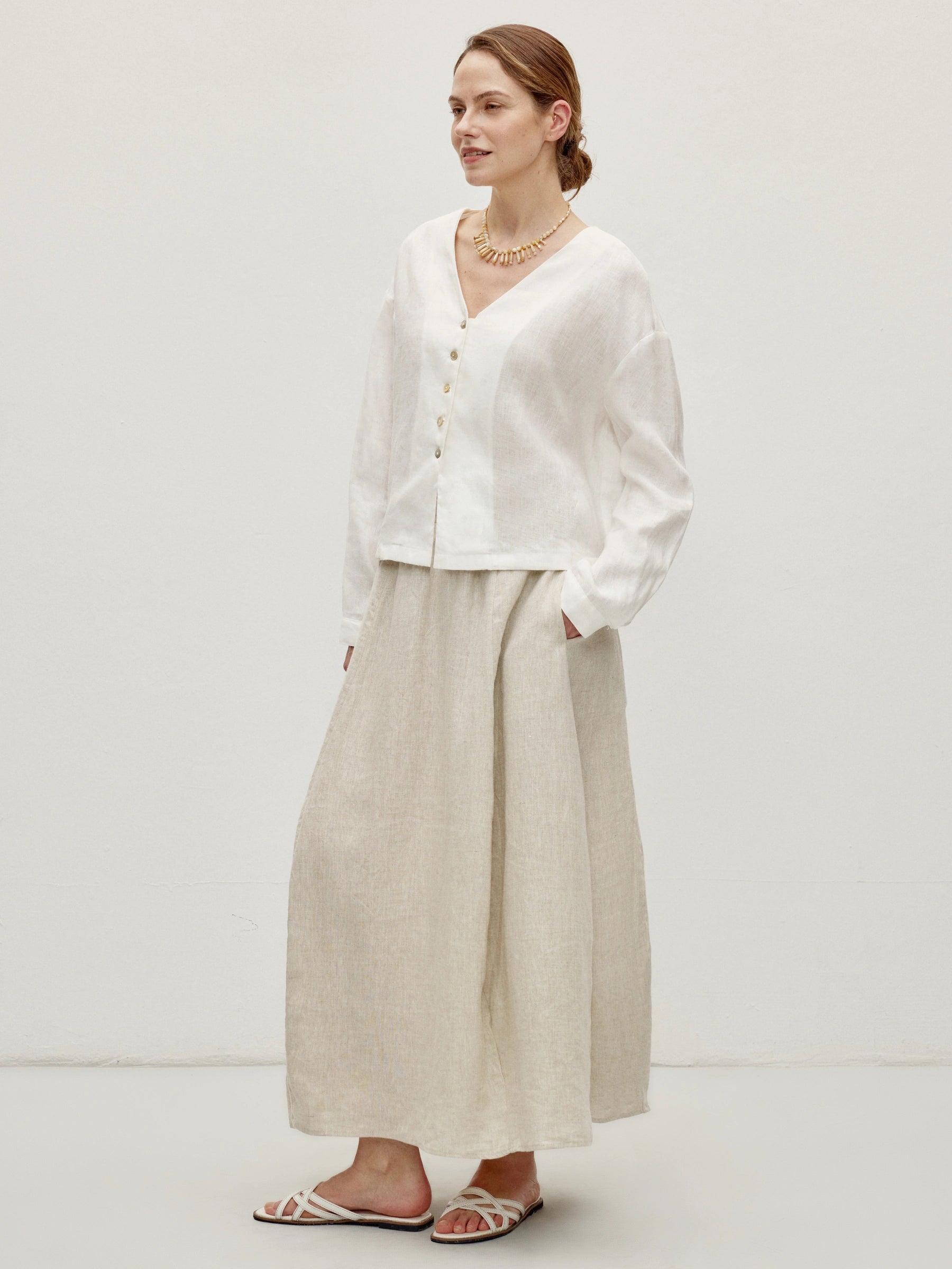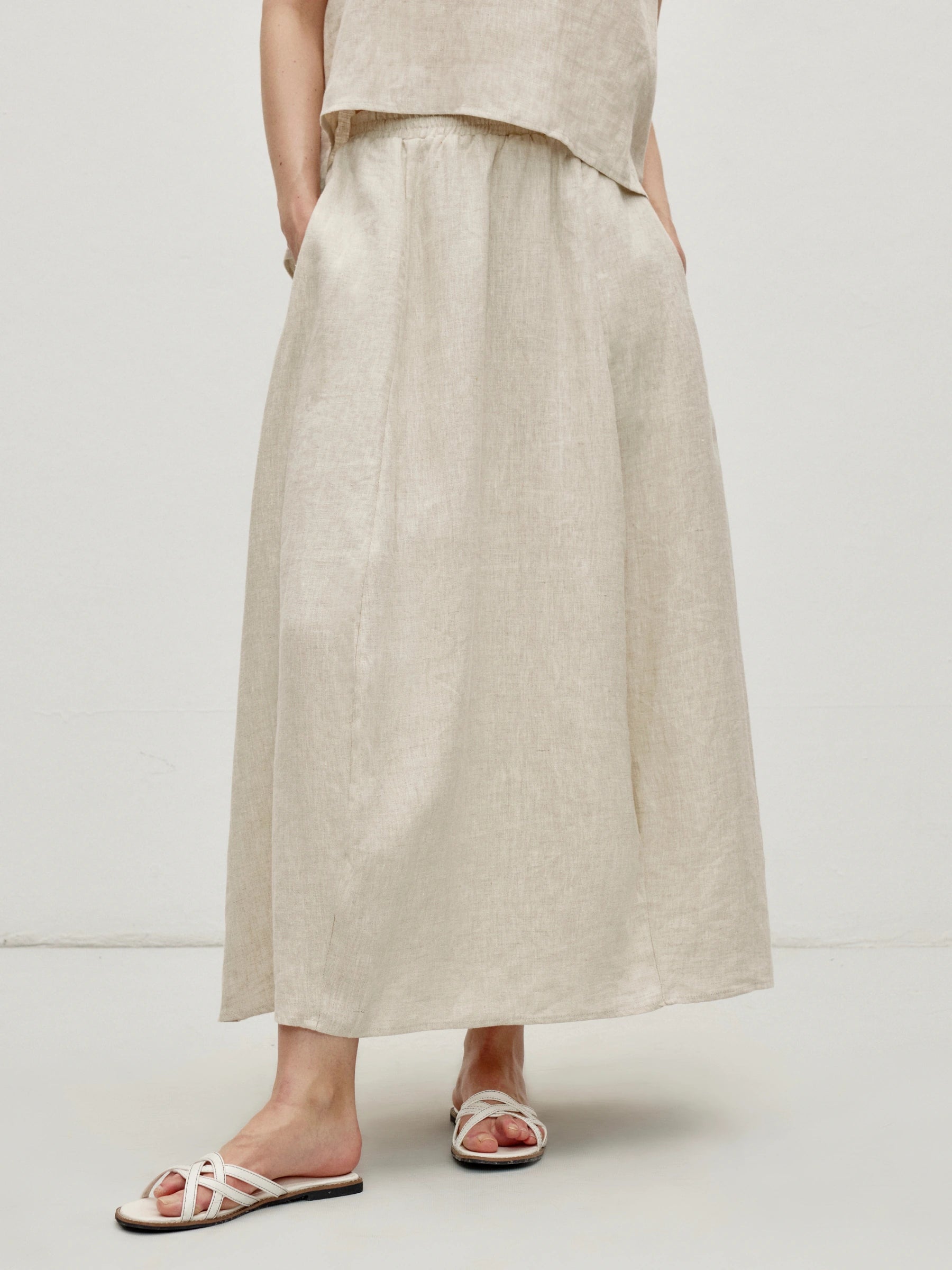 A softly structured linen skirt with natural volume and movement. Designed for comfort while adding gentle dimension to everyday styling.
