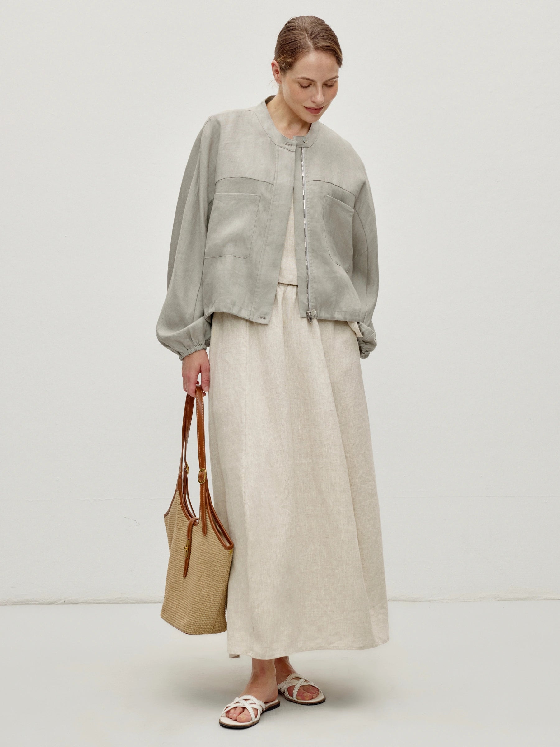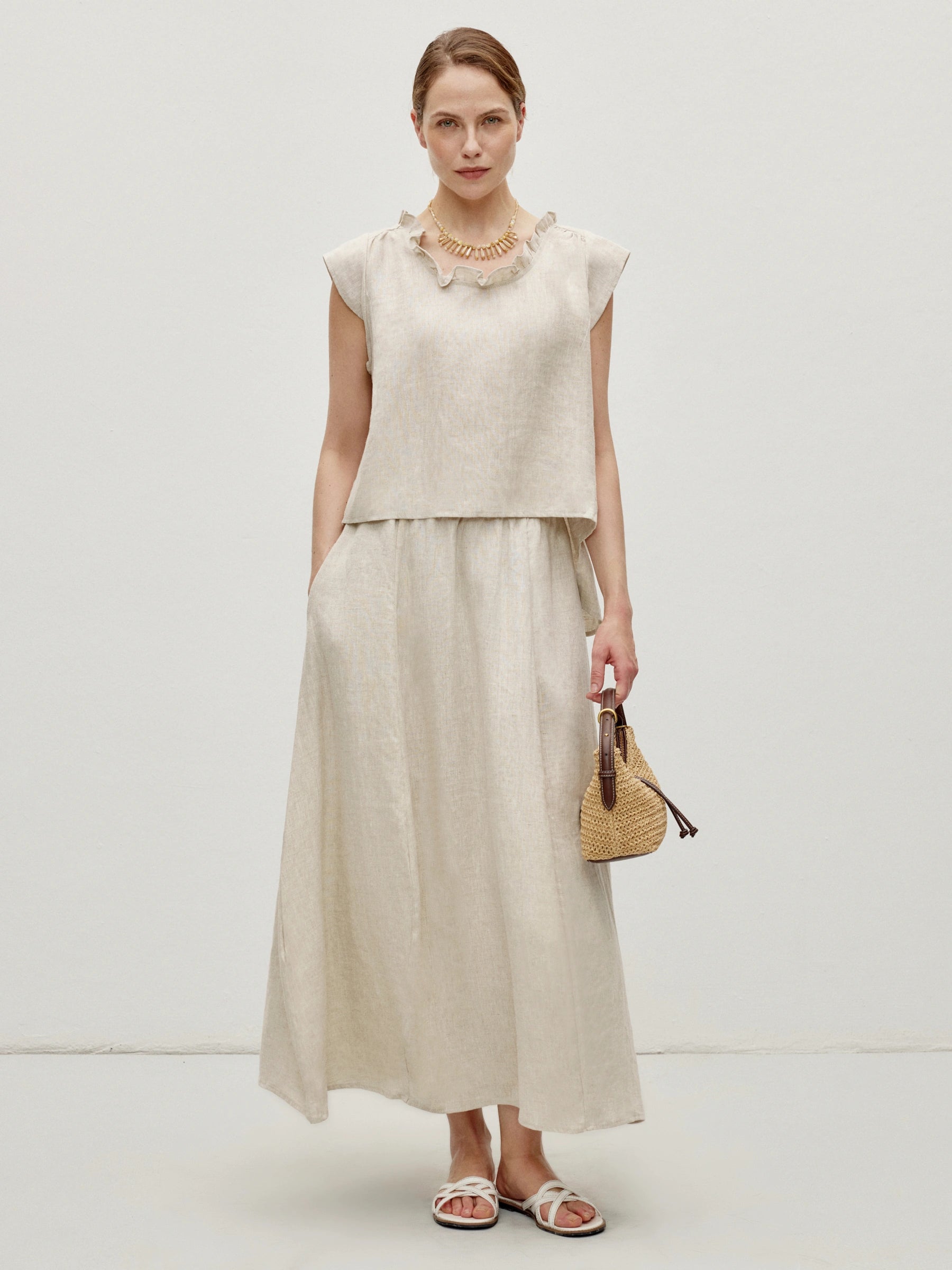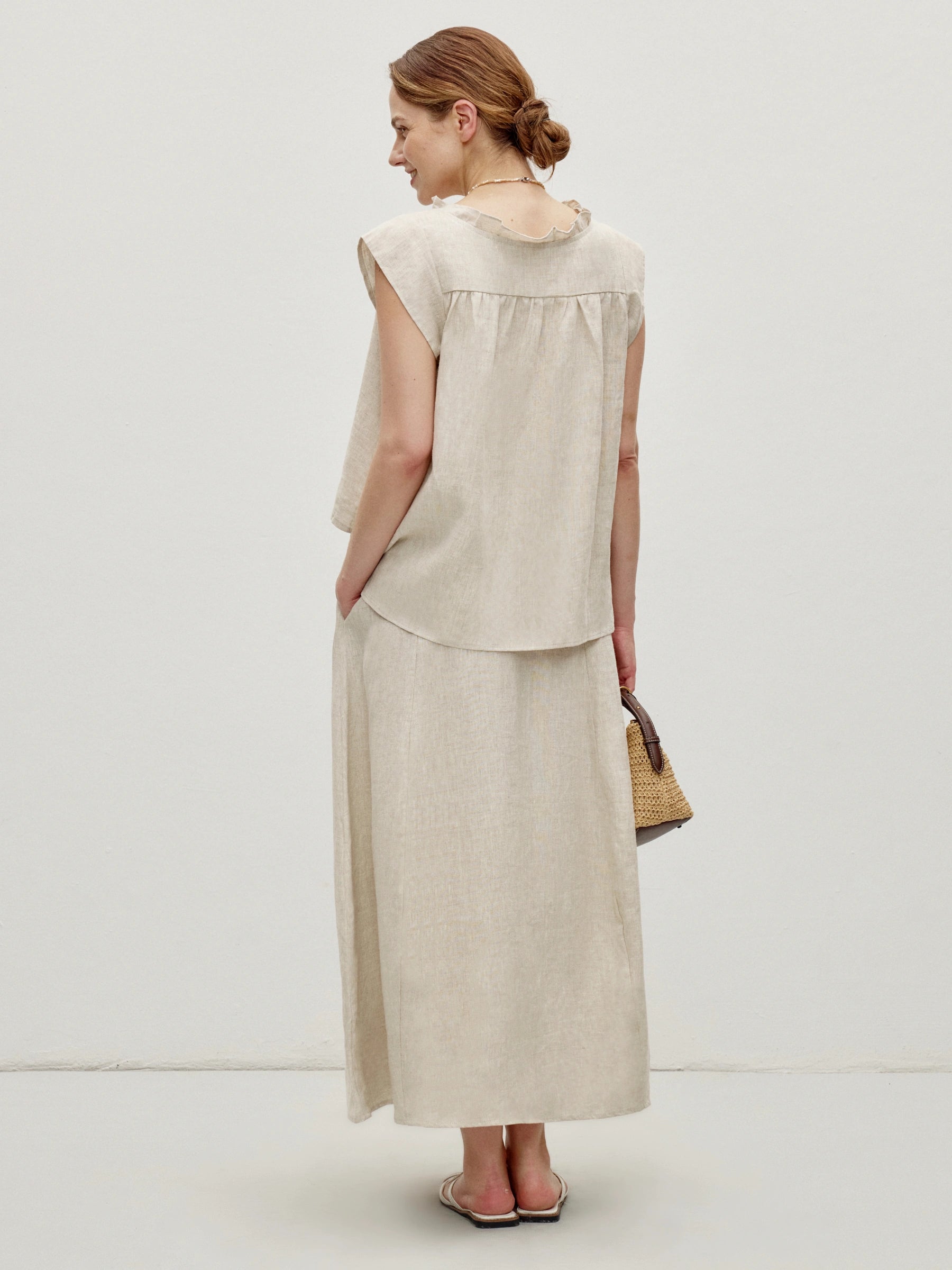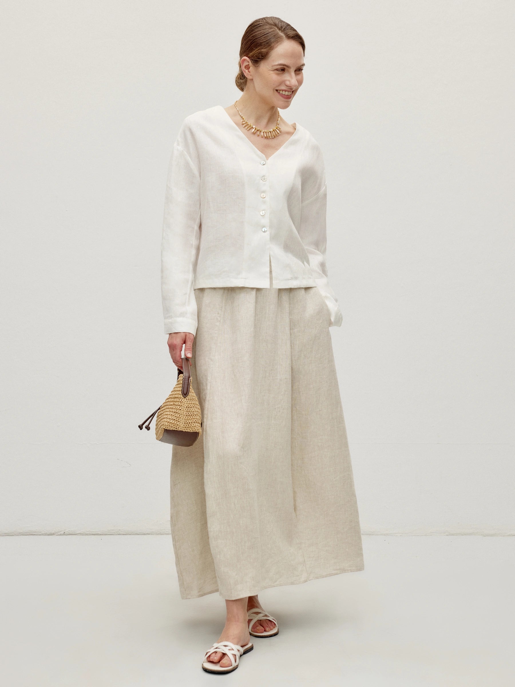 A softly structured linen skirt with natural volume and movement. Designed for comfort while adding gentle dimension to everyday styling.
