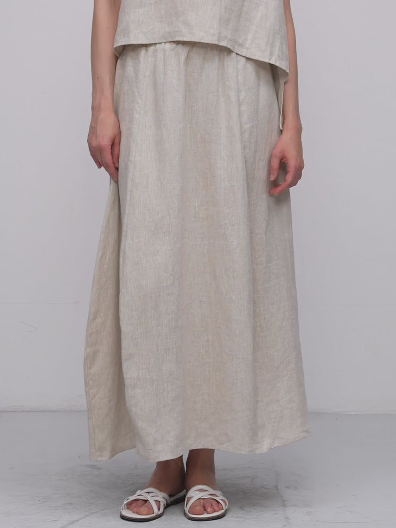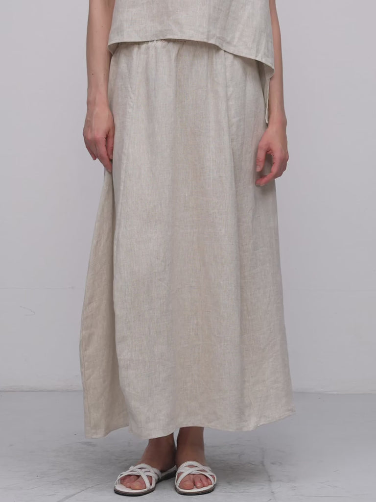 100% Linen Elastic Waist Side Pocket Maxi Skirt