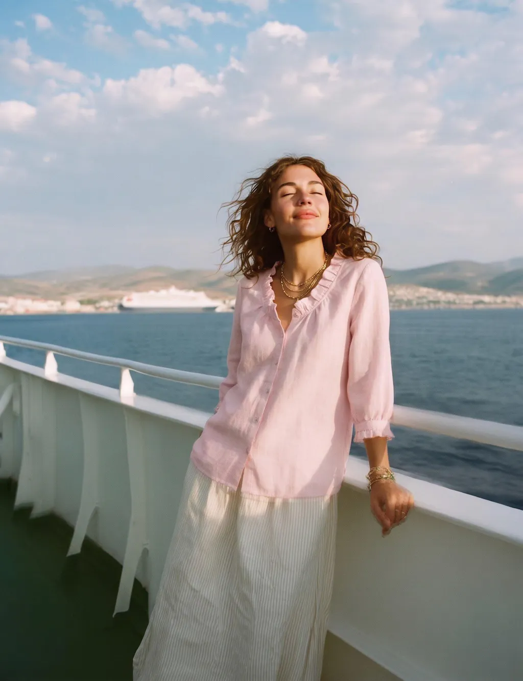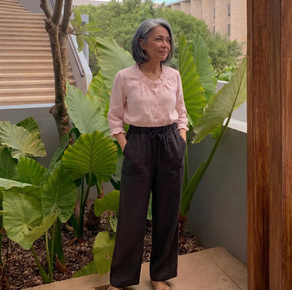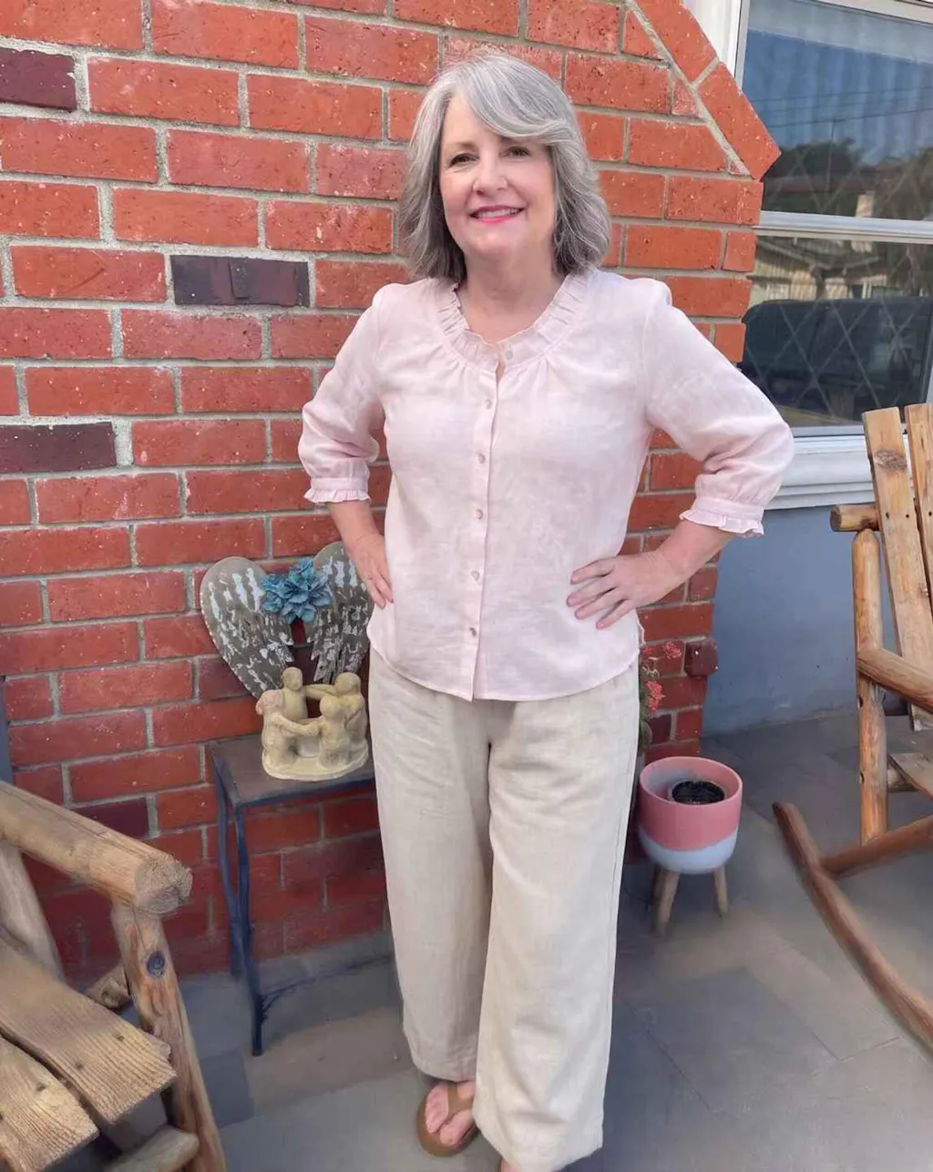 This pink pure linen top is absolute perfection! The color is such a soft, lovely pink, not too bright, just beautifully subtle. The linen feels amazing on the skin, making it incredibly comfortable to wear. Whether I'm heading out for a casual day at home or taking it on vacation, it's always the perfect choice. So breathable and easy to style. Honestly, it has become my go-to for both relaxing trips and everyday errands. Highly recommend if you want something stylish, comfy, and versatile.