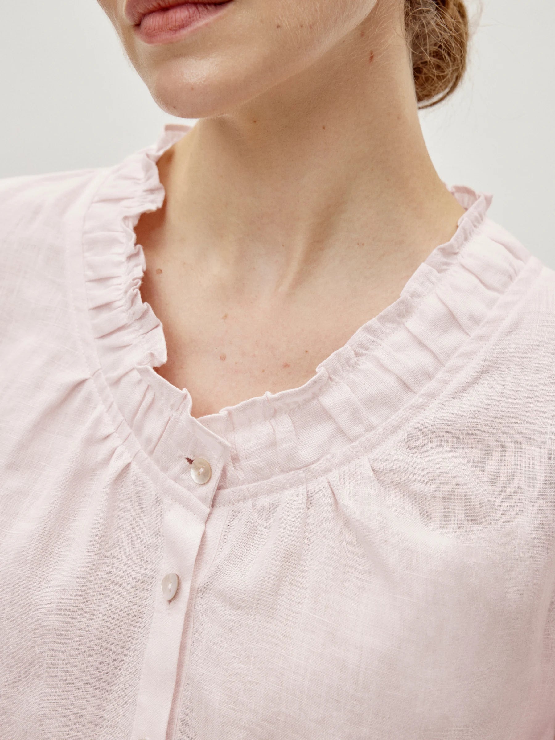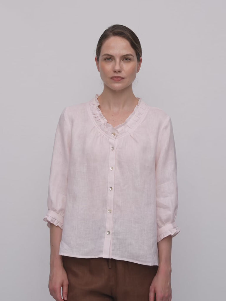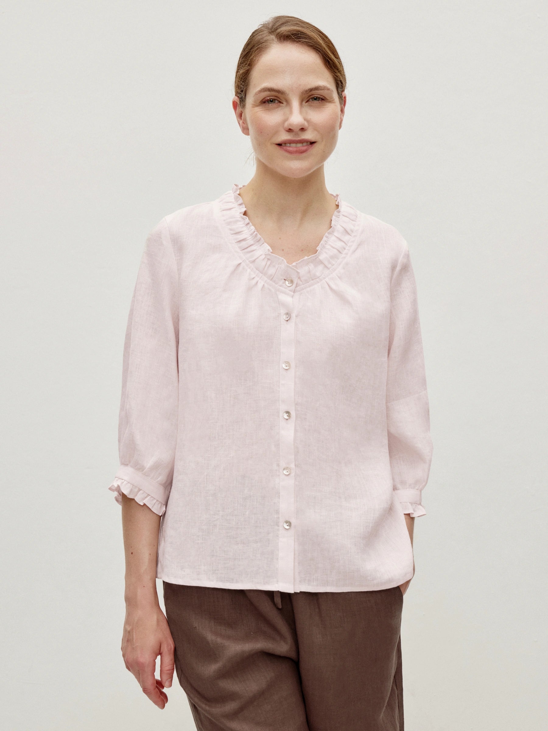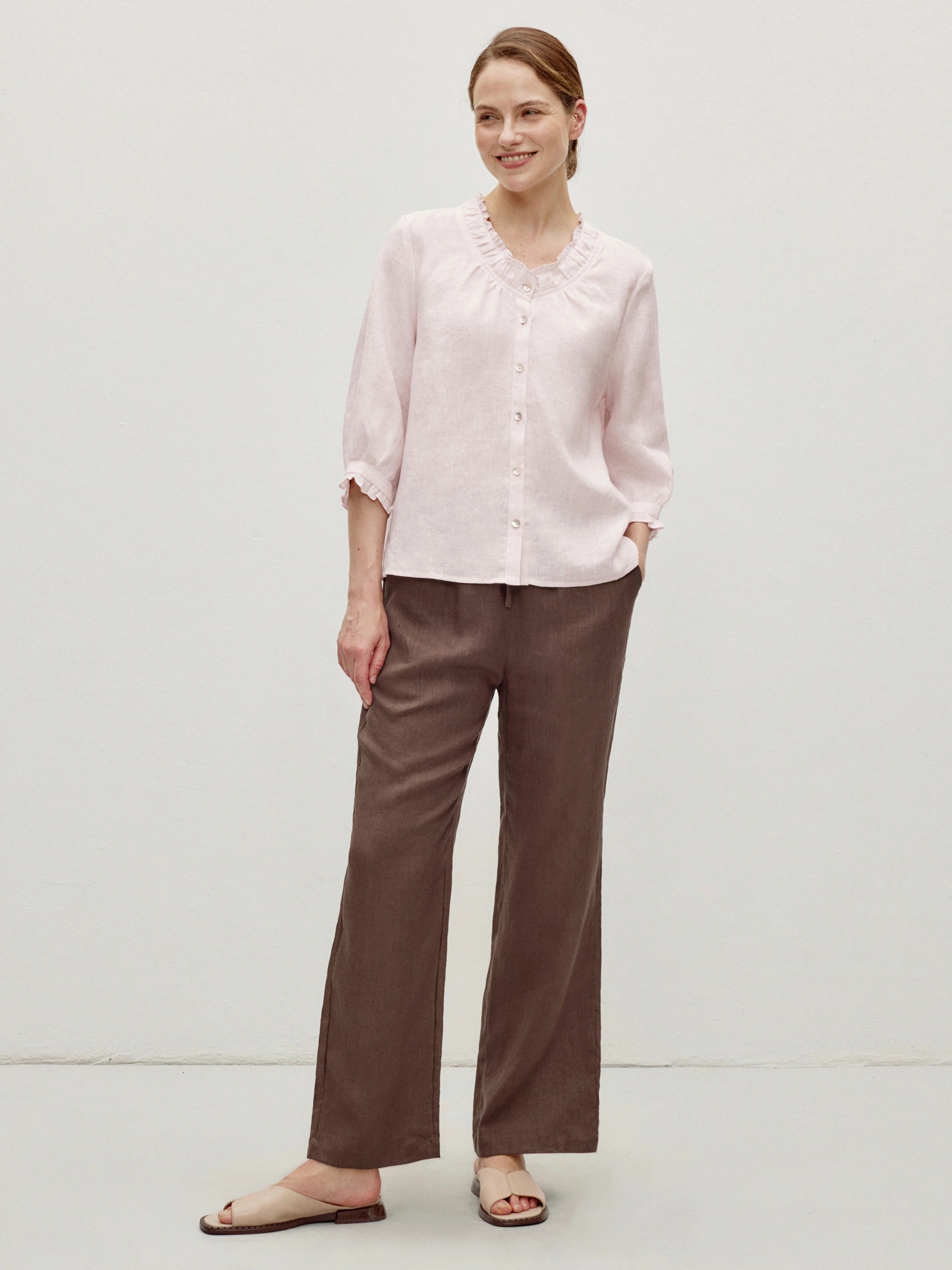 This pink pure linen top is absolute perfection! The color is such a soft, lovely pink, not too bright, just beautifully subtle. The linen feels amazing on the skin, making it incredibly comfortable to wear. Whether I'm heading out for a casual day at home or taking it on vacation, it's always the perfect choice. So breathable and easy to style. Honestly, it has become my go-to for both relaxing trips and everyday errands. Highly recommend if you want something stylish, comfy, and versatile.