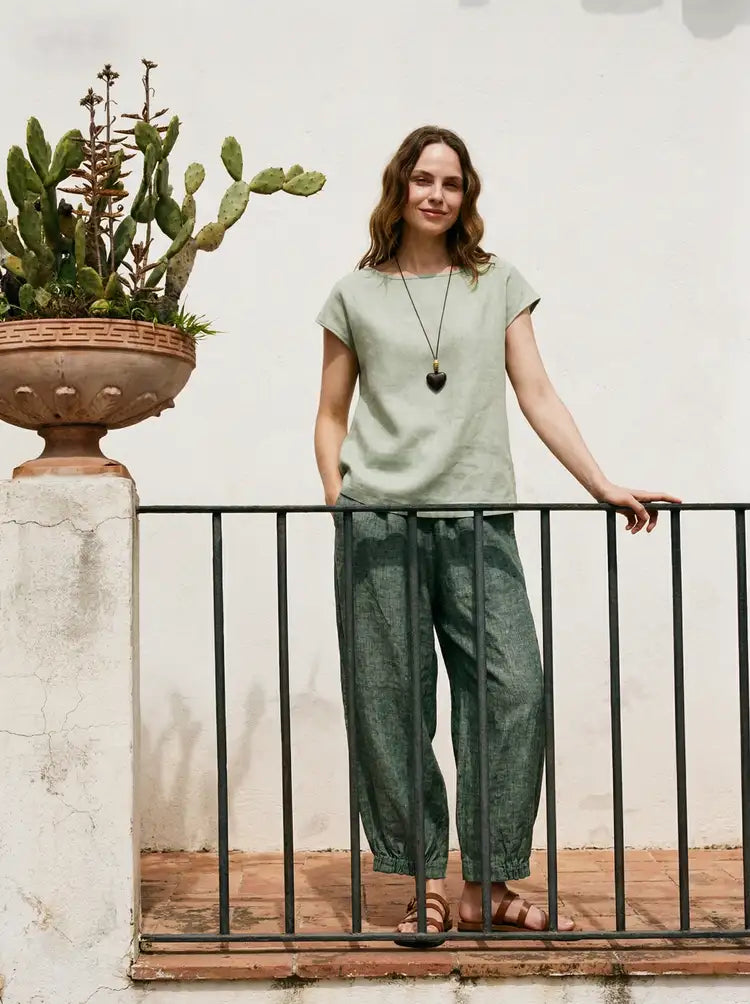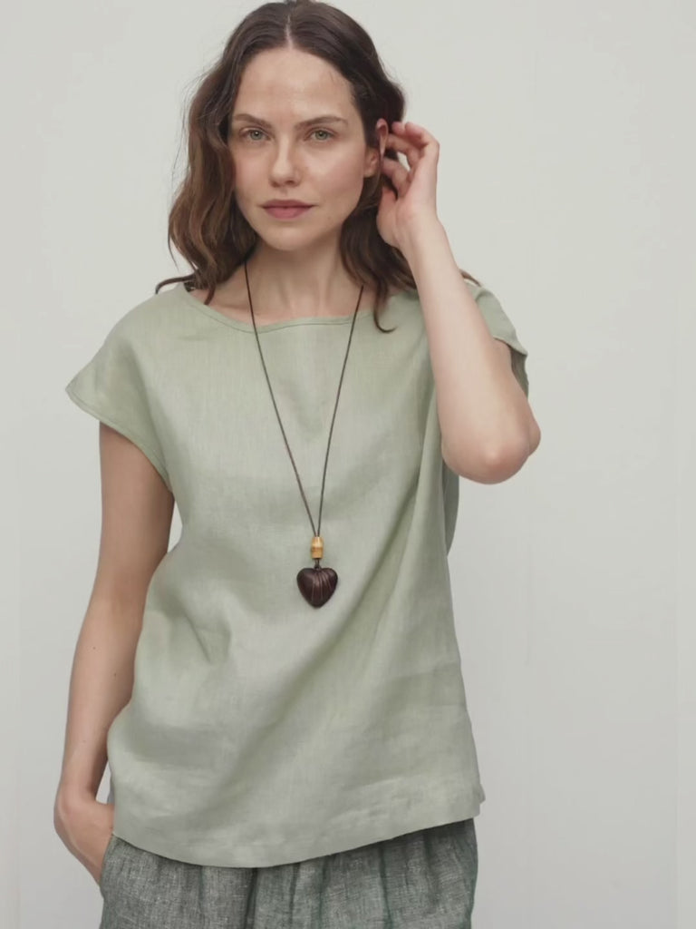 100% Linen Cap Sleeve Pullover Blouse