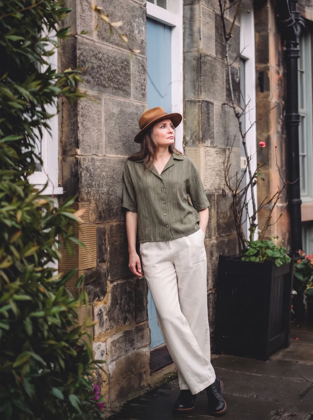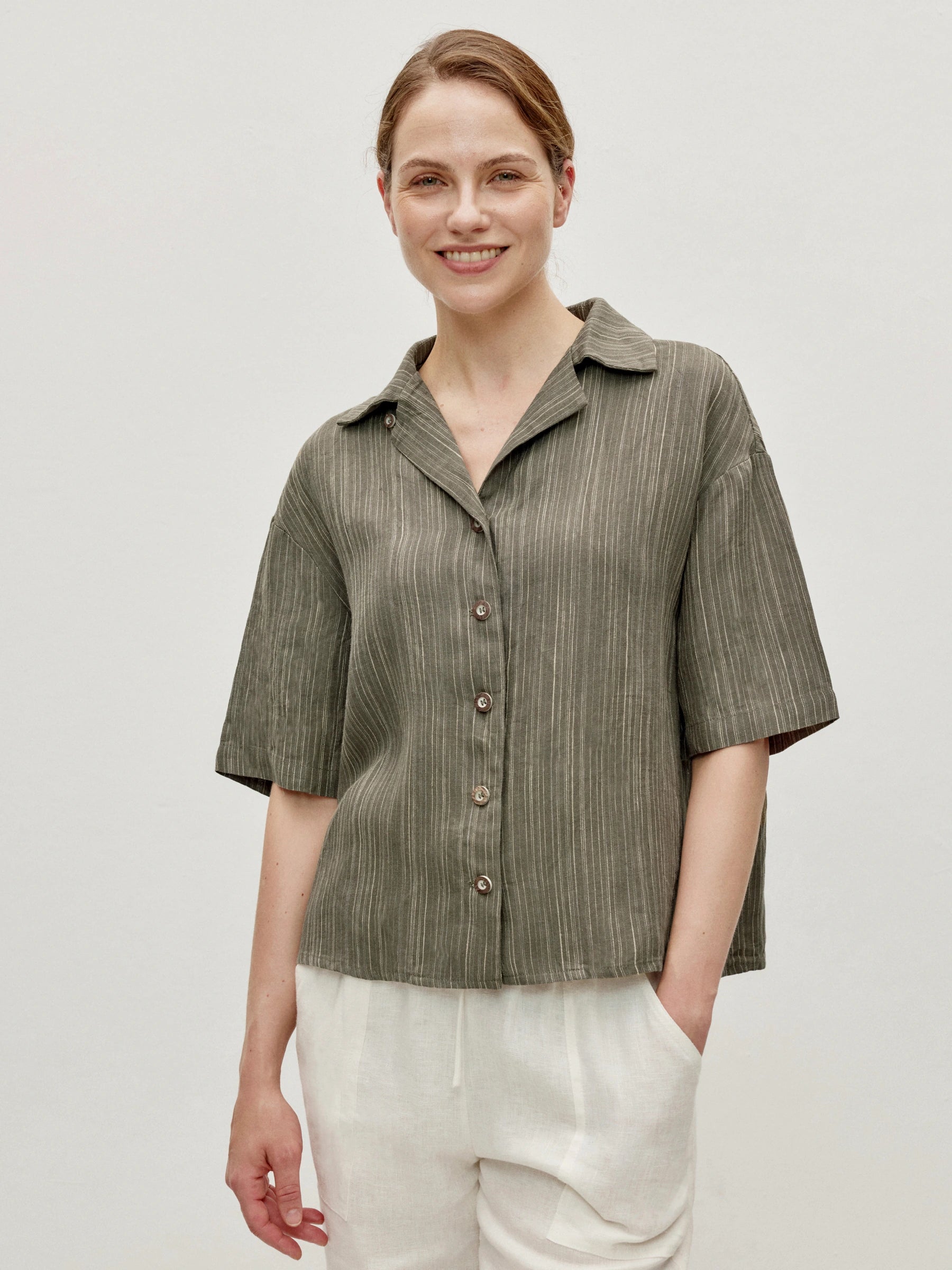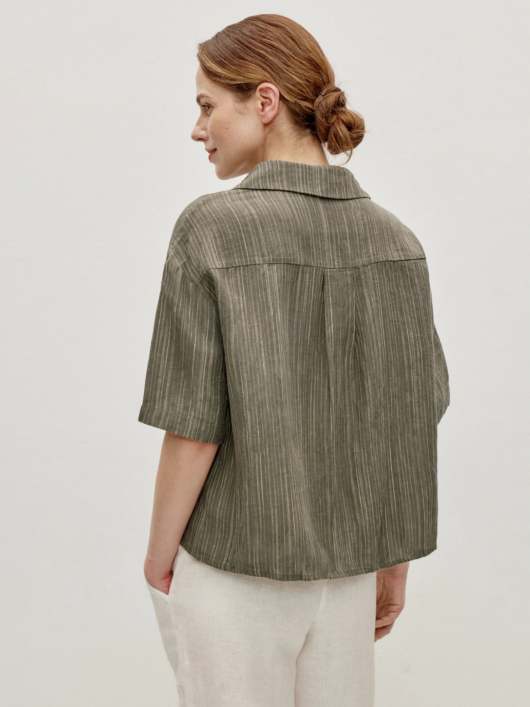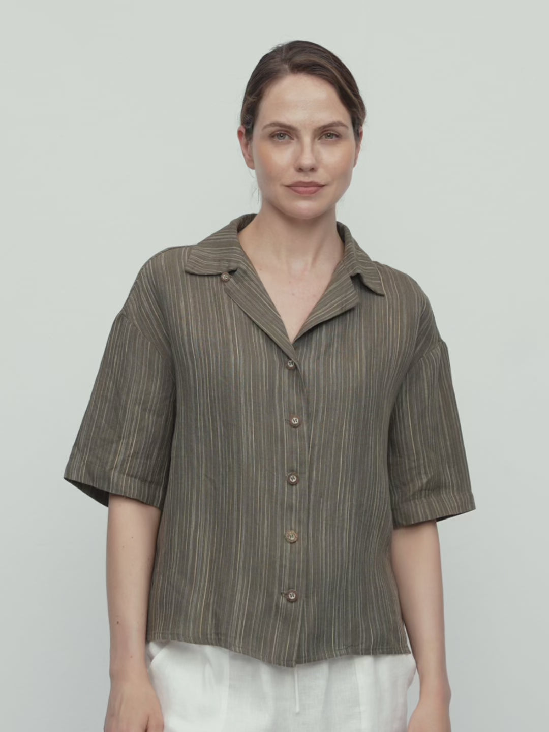 A striped linen shirt with a relaxed, vintage-inspired feel. Designed for comfort, it balances soft structure with breathable ease.