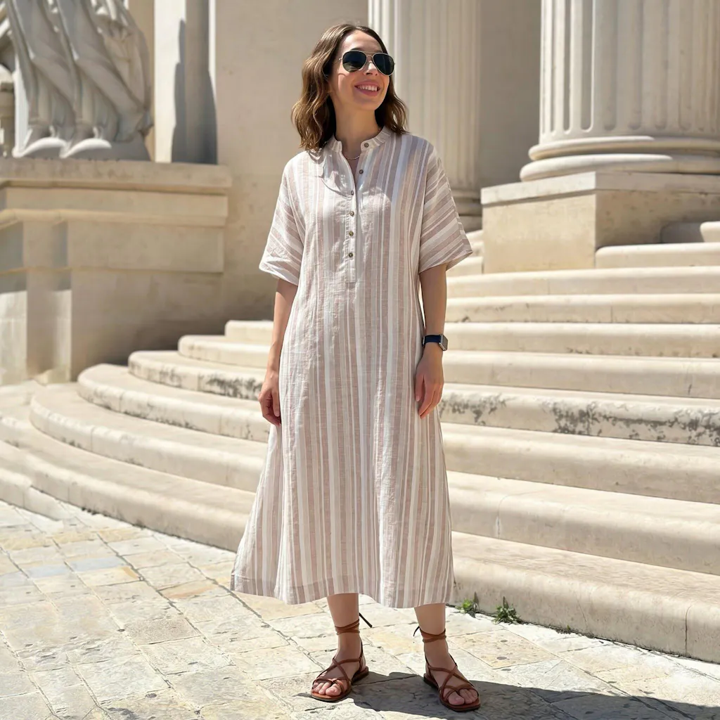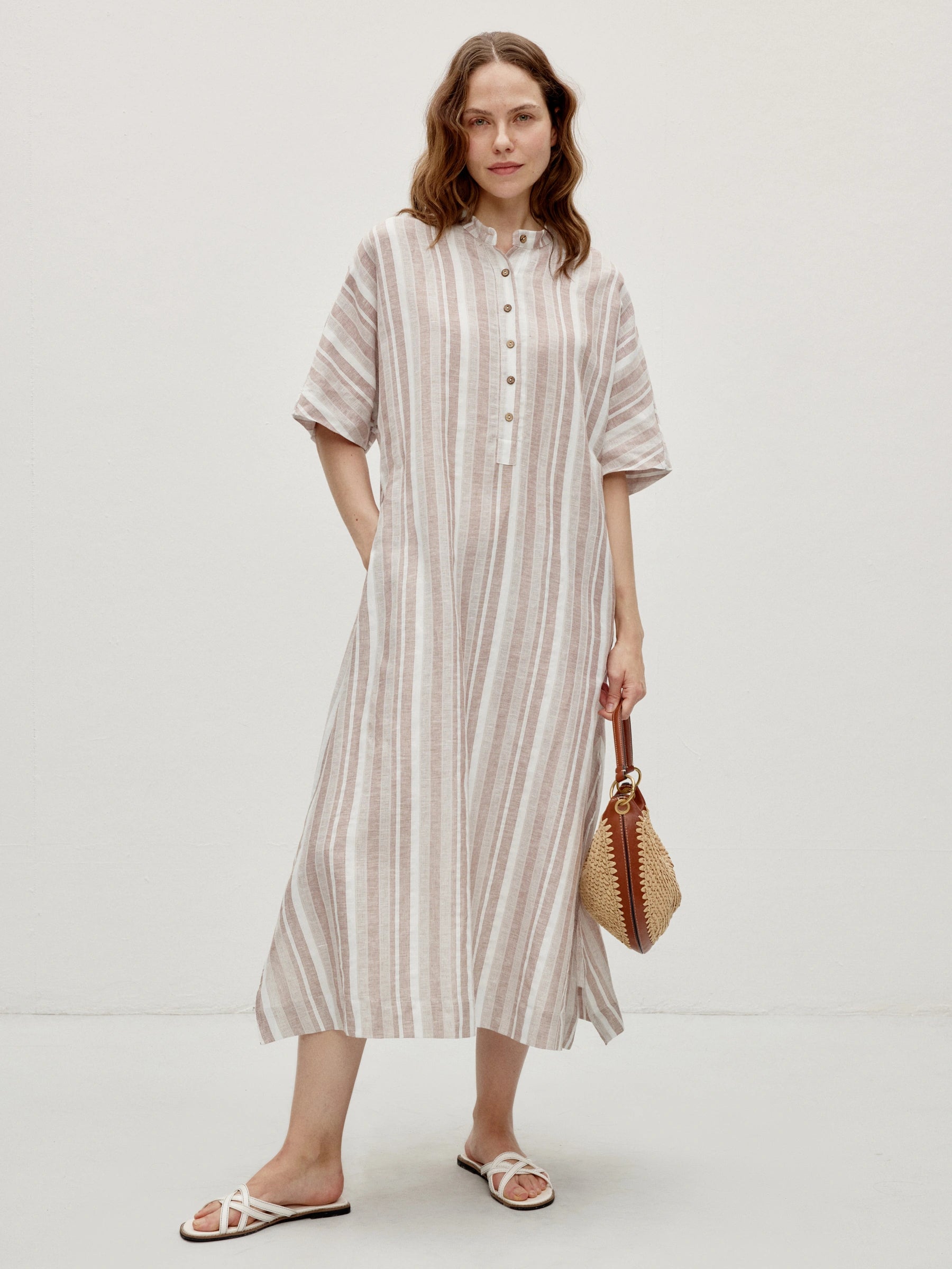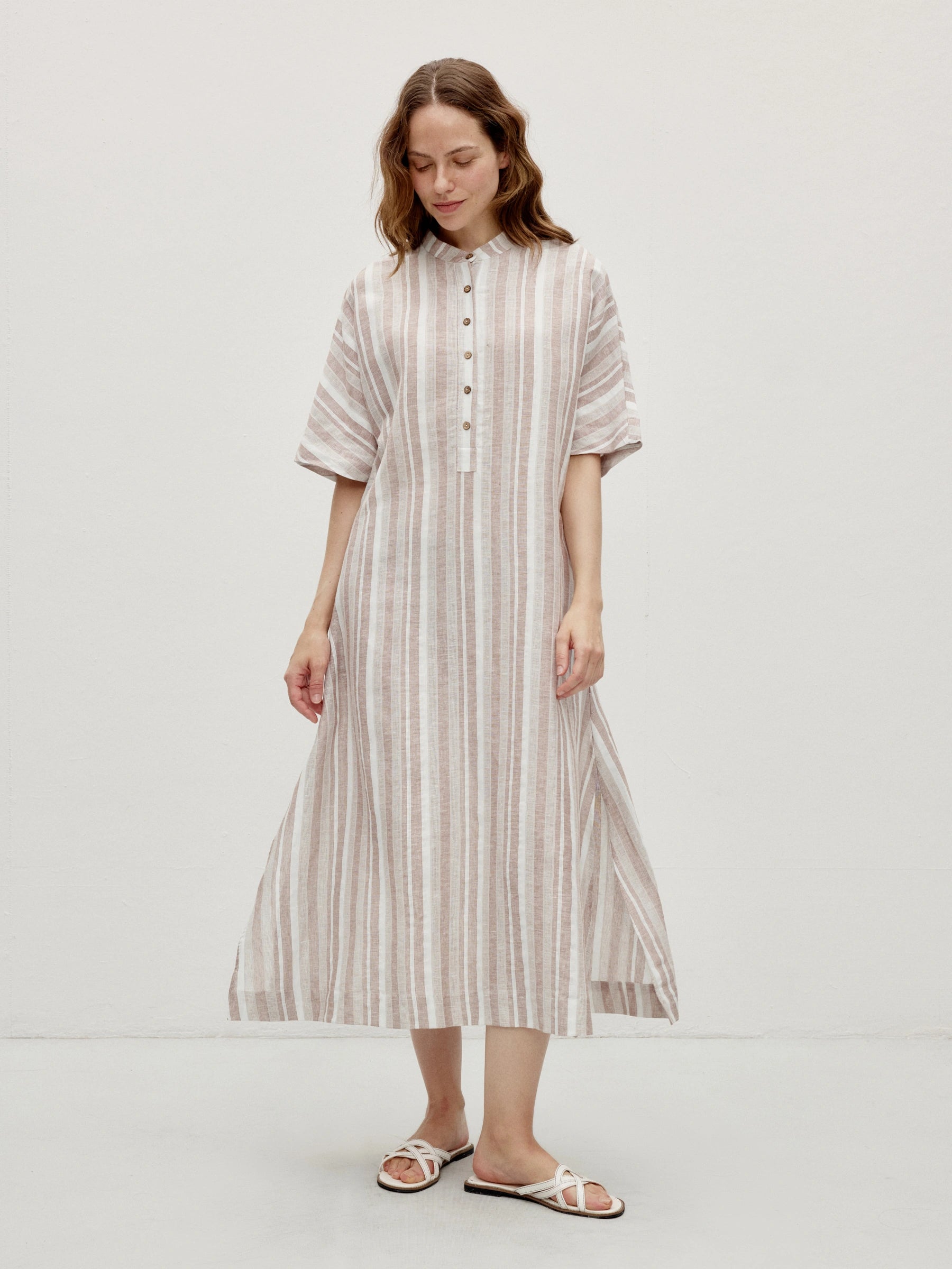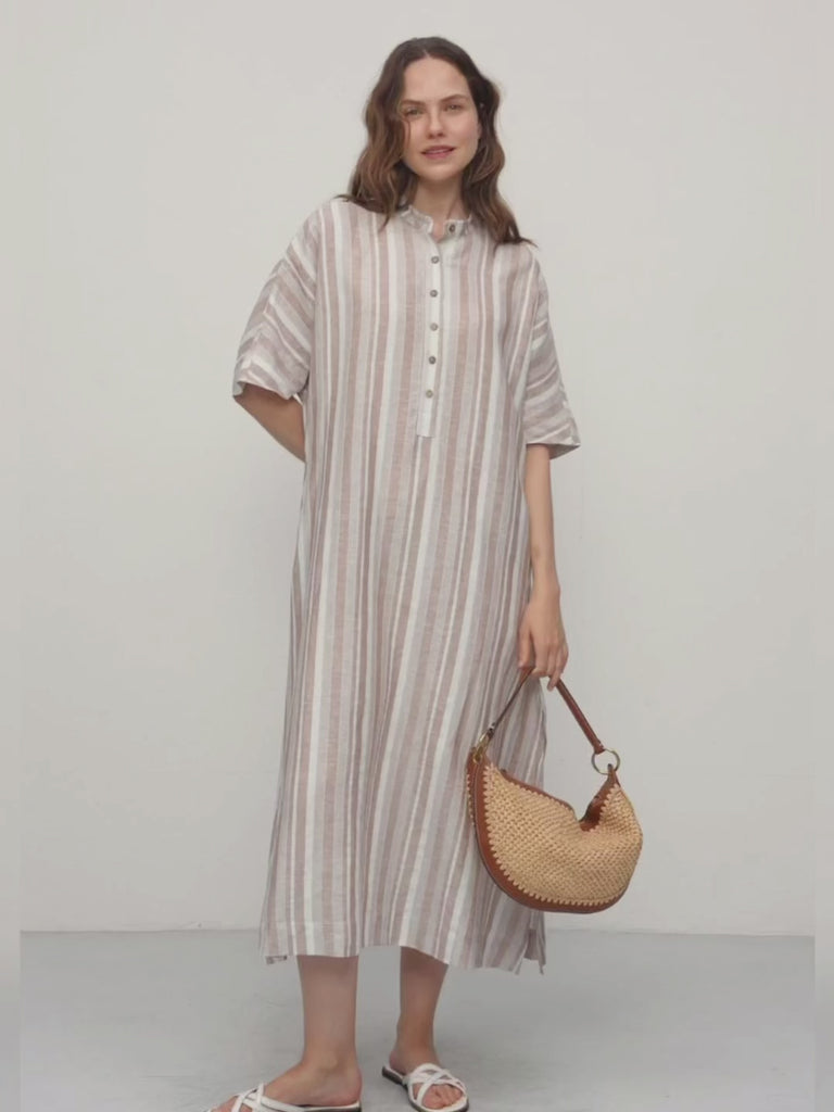 Linen Cotton Stripe Batwing Sleeve Oversized Maxi Dress